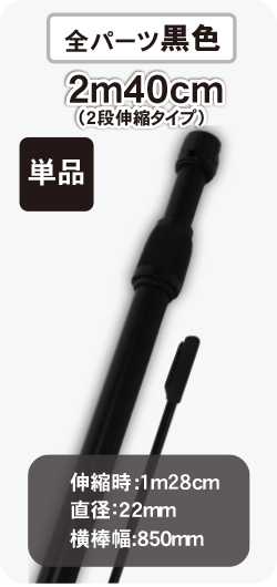 既製品2m40cmスタンダードポール(2段伸縮) 全パーツ黒